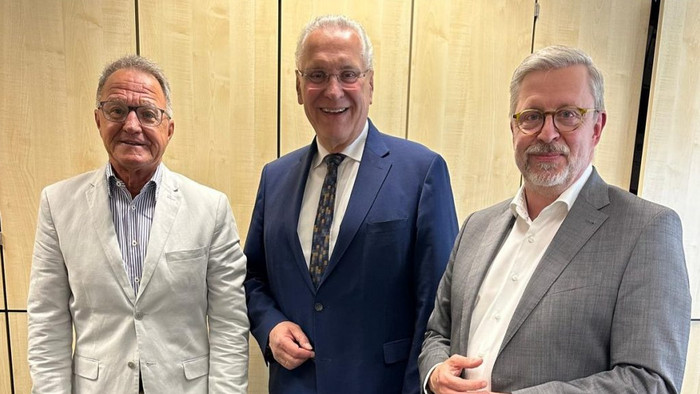 Gemeinsam mit dem BBB-Vorsitzenden Rainer Nachtigall nahm der Vorsitzende der DVG-Bayern, Reiner Meier, an einem Gespräch mit Staatsminister Joachim Herrmann teil. Zuvor gab es im Rahmen eines Besuchs von Studierenden der HföD in Hof im Bayerischen Landtag auch ein Gespräch mit Staatsminister Albert Füracker, MdL.